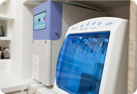 ガスを用いることで、ゴム・ビニール・プラスチックなどの器具を傷めずに細菌・ウィルスを死滅させる装置です。より衛生面を強化するために使用しています。